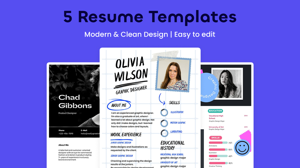 5 Modern Resume Templates | Fresh Resume Templates | 2023 Clean Resume Templates | Simple Modern Creative Sleek Template | Canva