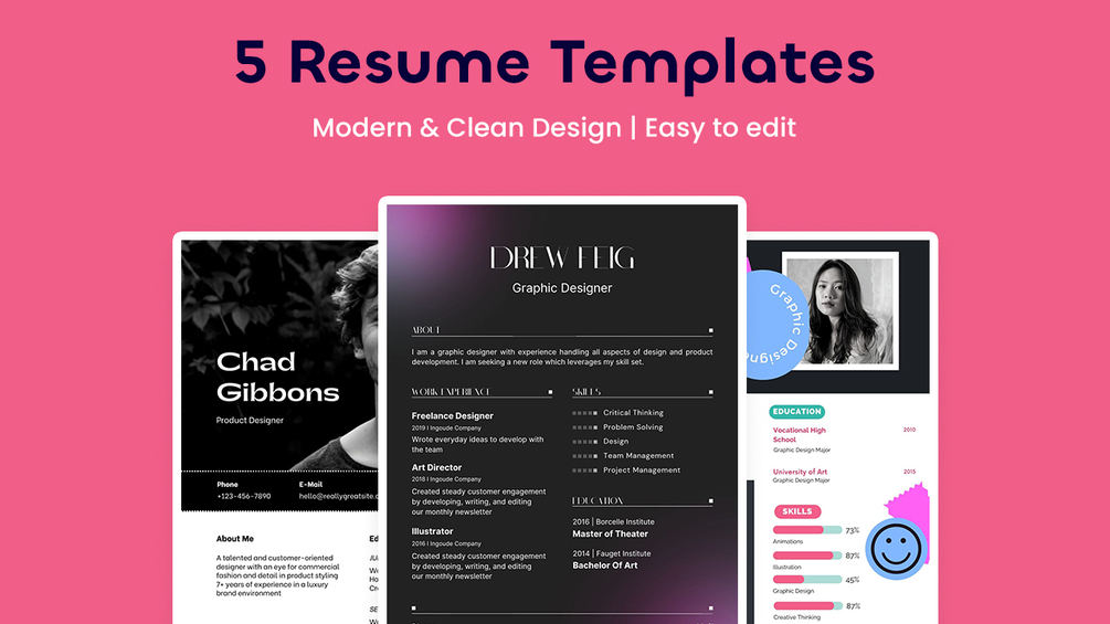 You will get 5 modern resumes templates